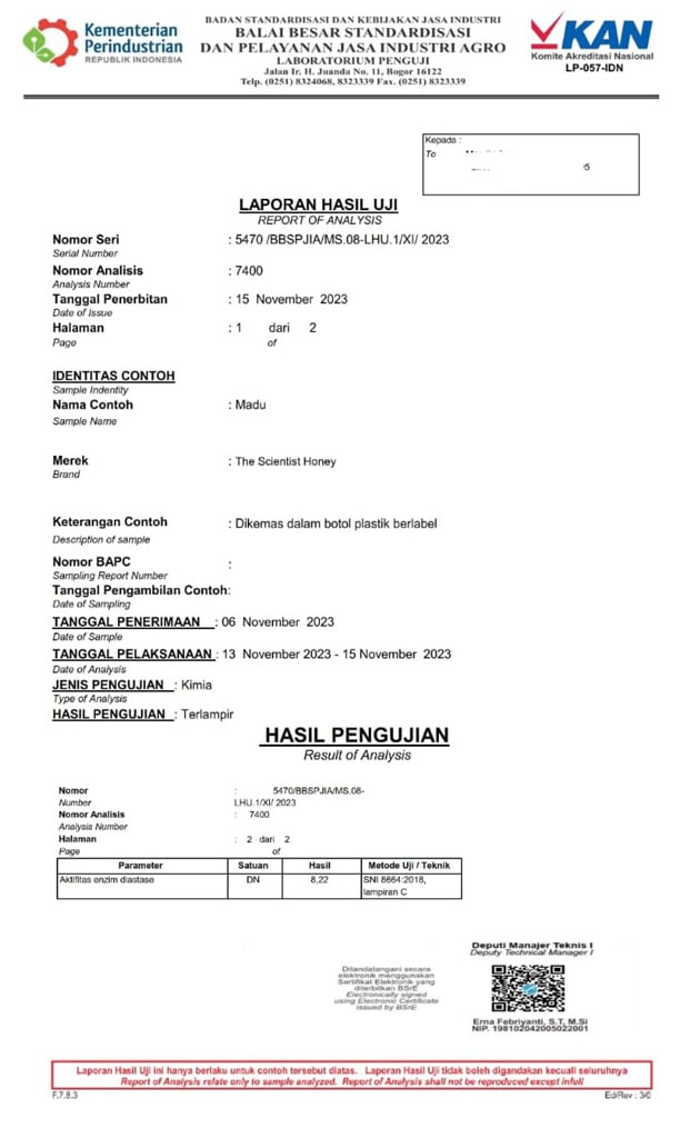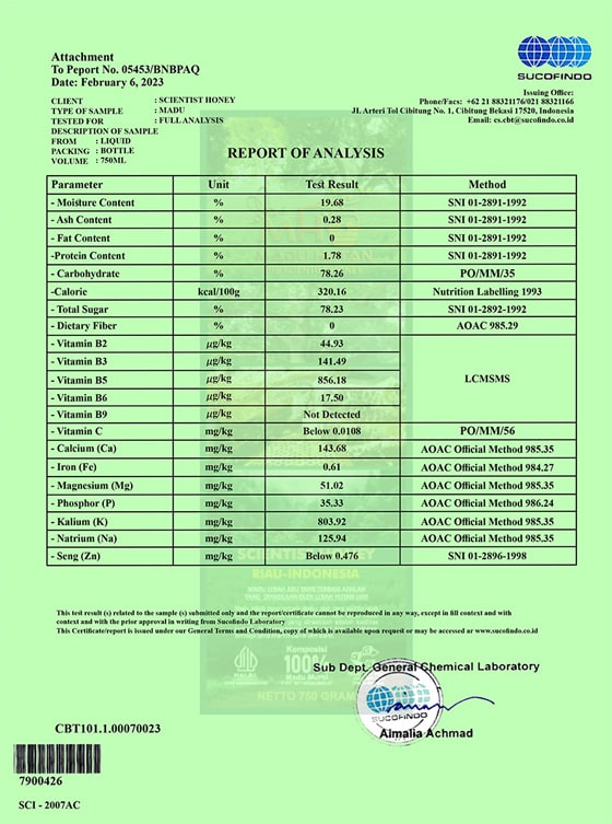 The Scientist Honey sudah uji lab sehingga aman dikonsumsi
